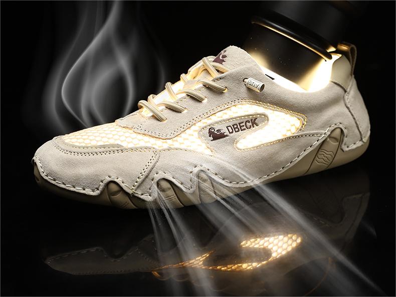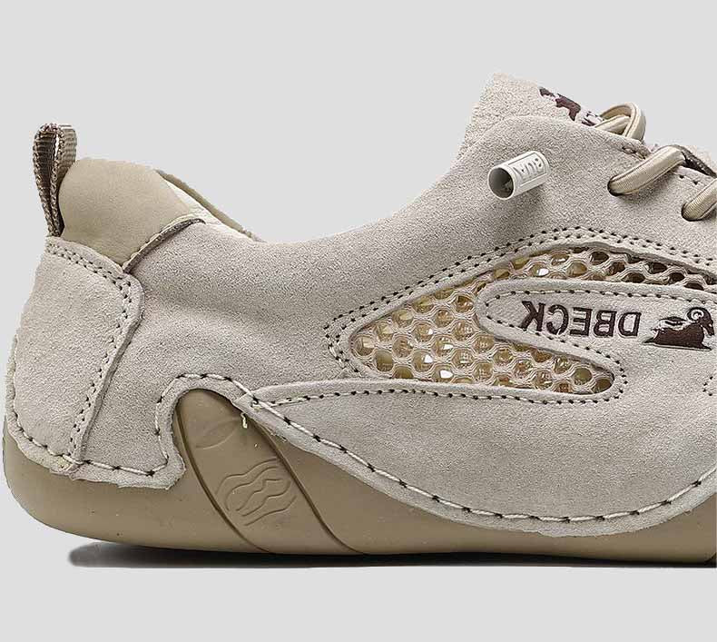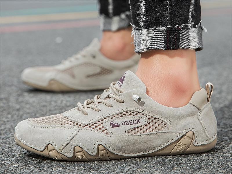 Notre couche supérieure en cuir de vache et en maille est une combinaison parfaite de respirabilité et de durabilité. Le cuir de vachette offre une surface solide et résistante à l'abrasion , tandis que le tissu en maille permet une circulation d'air maximale, vous gardant au frais et à l'aise .